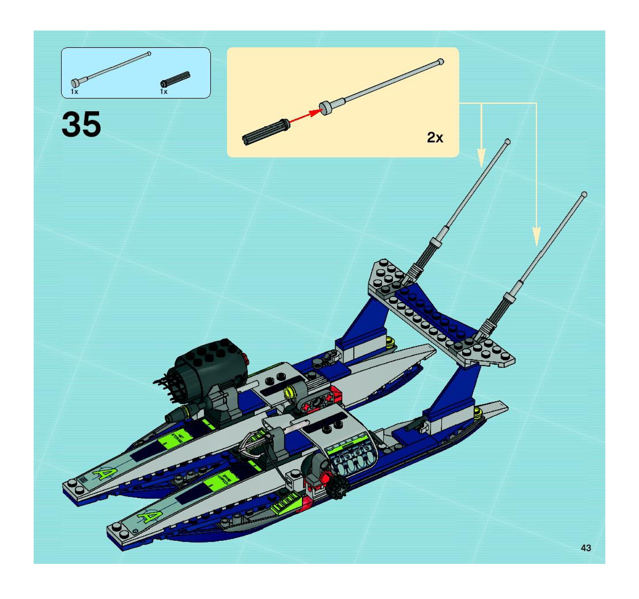 On this page you can find the original construction manual for the LEGO 8633 set. With the assembly manual you can easily learn how to build the 8633 Mission 4: Speedboat Rescue step by step. The set was released in 2008.