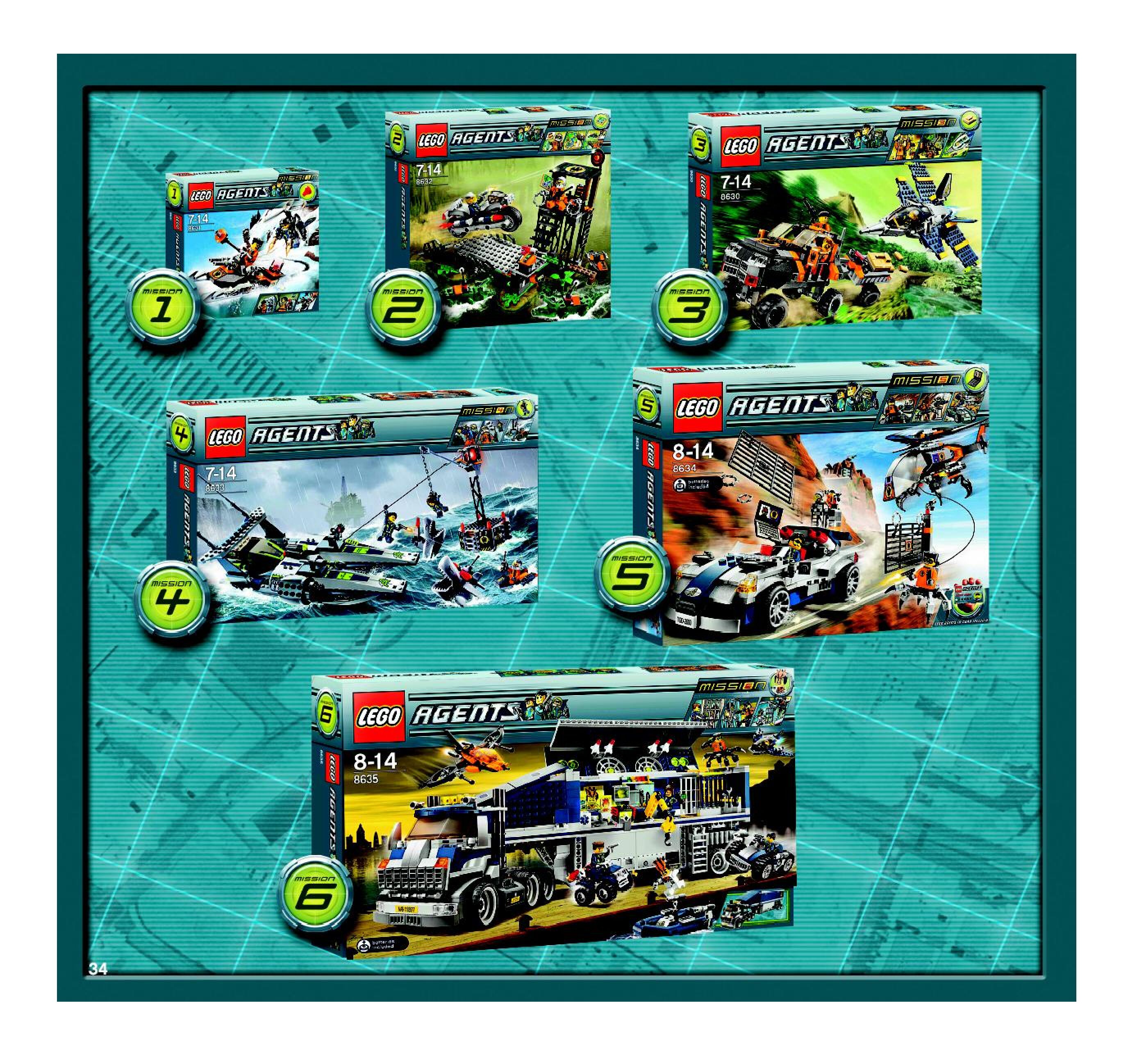 This page shares information about LEGO 8634 Mission 5: Turbocar Chase manual, LEGO 8634 PDF instructions, LEGO 8634 Mission 5: Turbocar Chase building guide online, How to build 8634 Mission 5: Turbocar Chase LEGO.