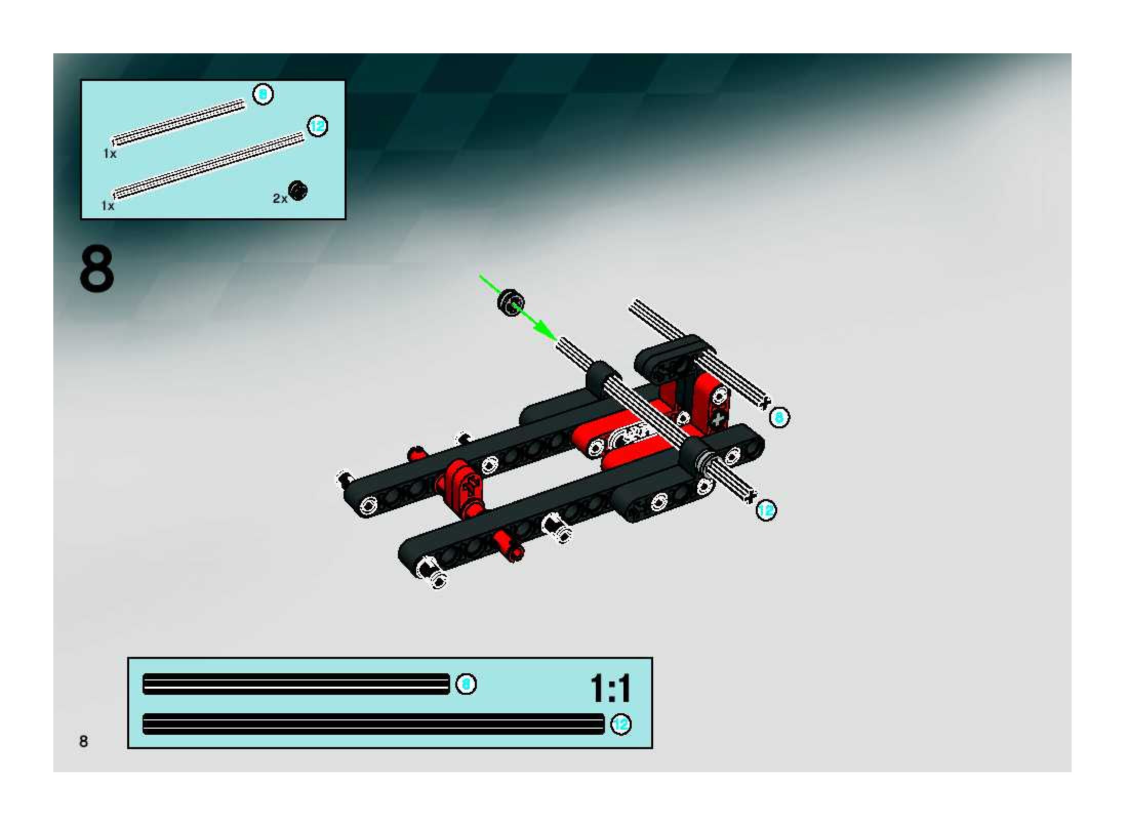 On this page you can find the original construction manual for the LEGO 8650 set. With the assembly manual you can easily learn how to build the 8650 Furious Slammer Racer step by step. The set was released in 2004.