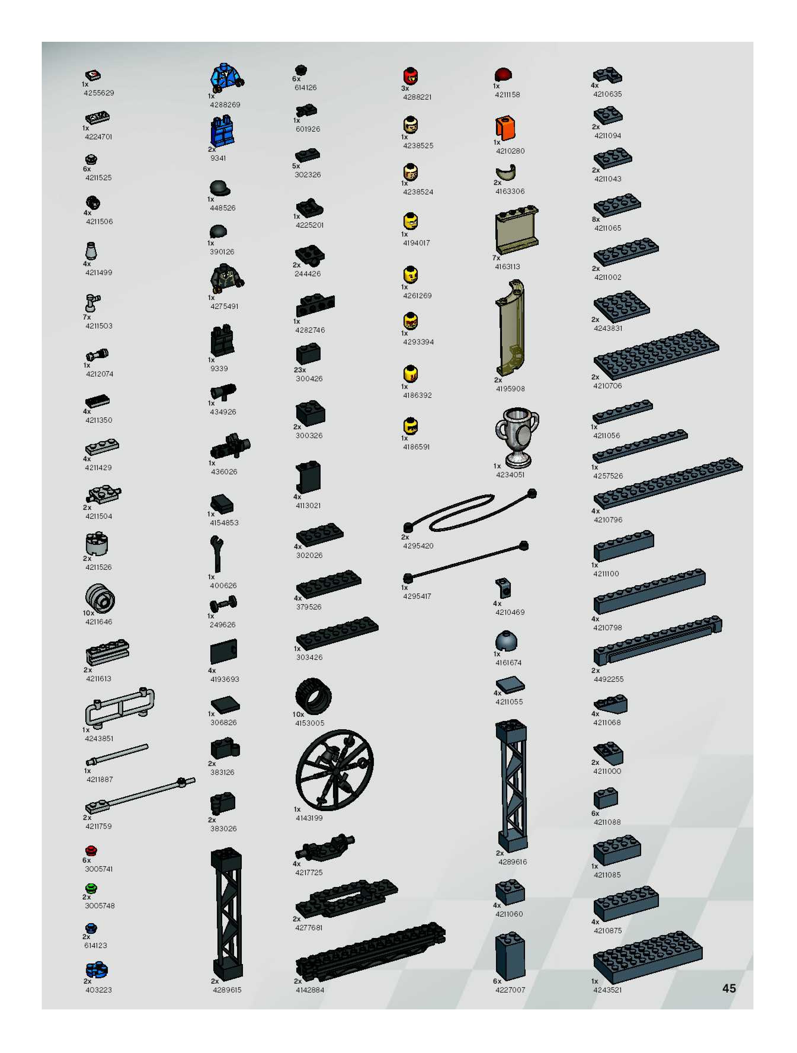 The assembly guide is prepared in a very understandable way for children and adult LEGO enthusiasts. A total of 48 picture galleries are shown, explaining the step-by-step construction stages for 1 different structures.
