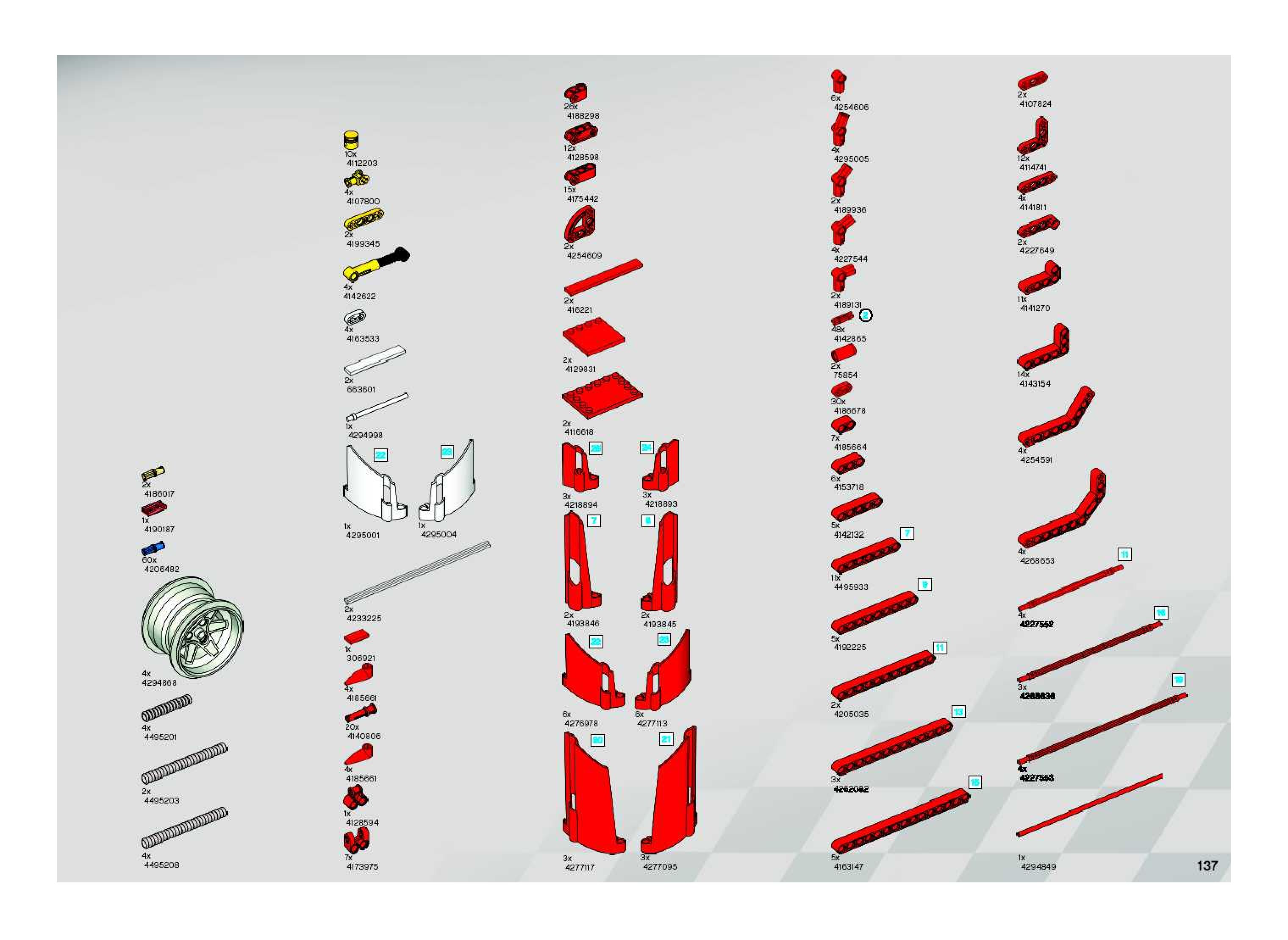 The assembly guide is prepared in a very understandable way for children and adult LEGO enthusiasts. A total of 140 picture galleries are shown, explaining the step-by-step construction stages for 1 different structures.