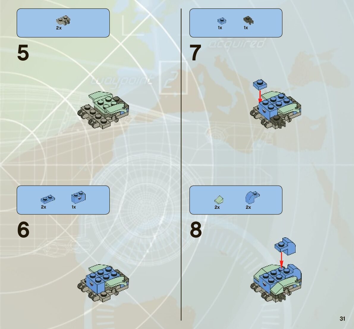 The assembly guide is prepared in a very understandable way for children and adult LEGO enthusiasts. A total of 816 picture galleries are shown, explaining the step-by-step construction stages for 2 different structures.