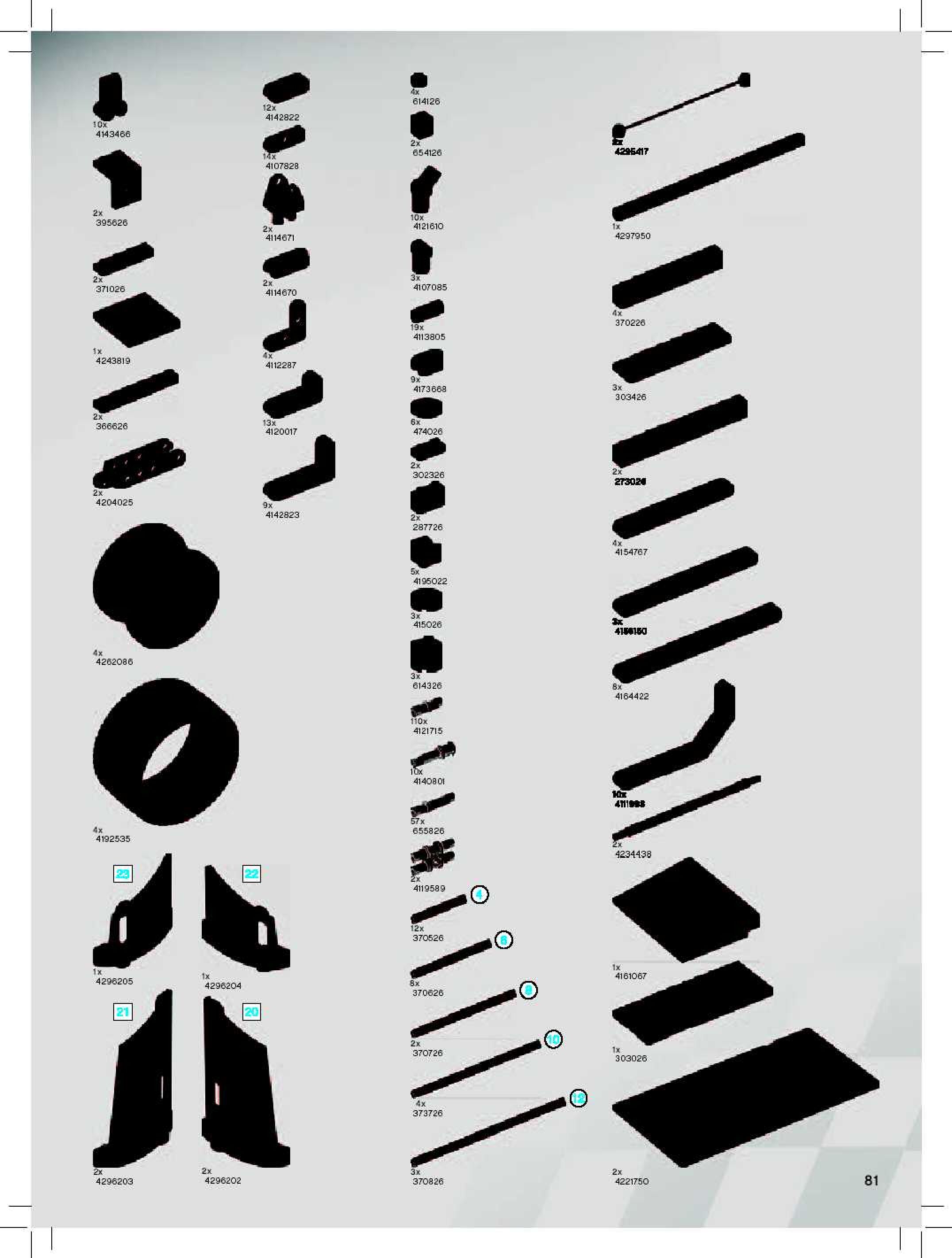 The assembly guide is prepared in a very understandable way for children and adult LEGO enthusiasts. A total of 84 picture galleries are shown, explaining the step-by-step construction stages for 1 different structures.