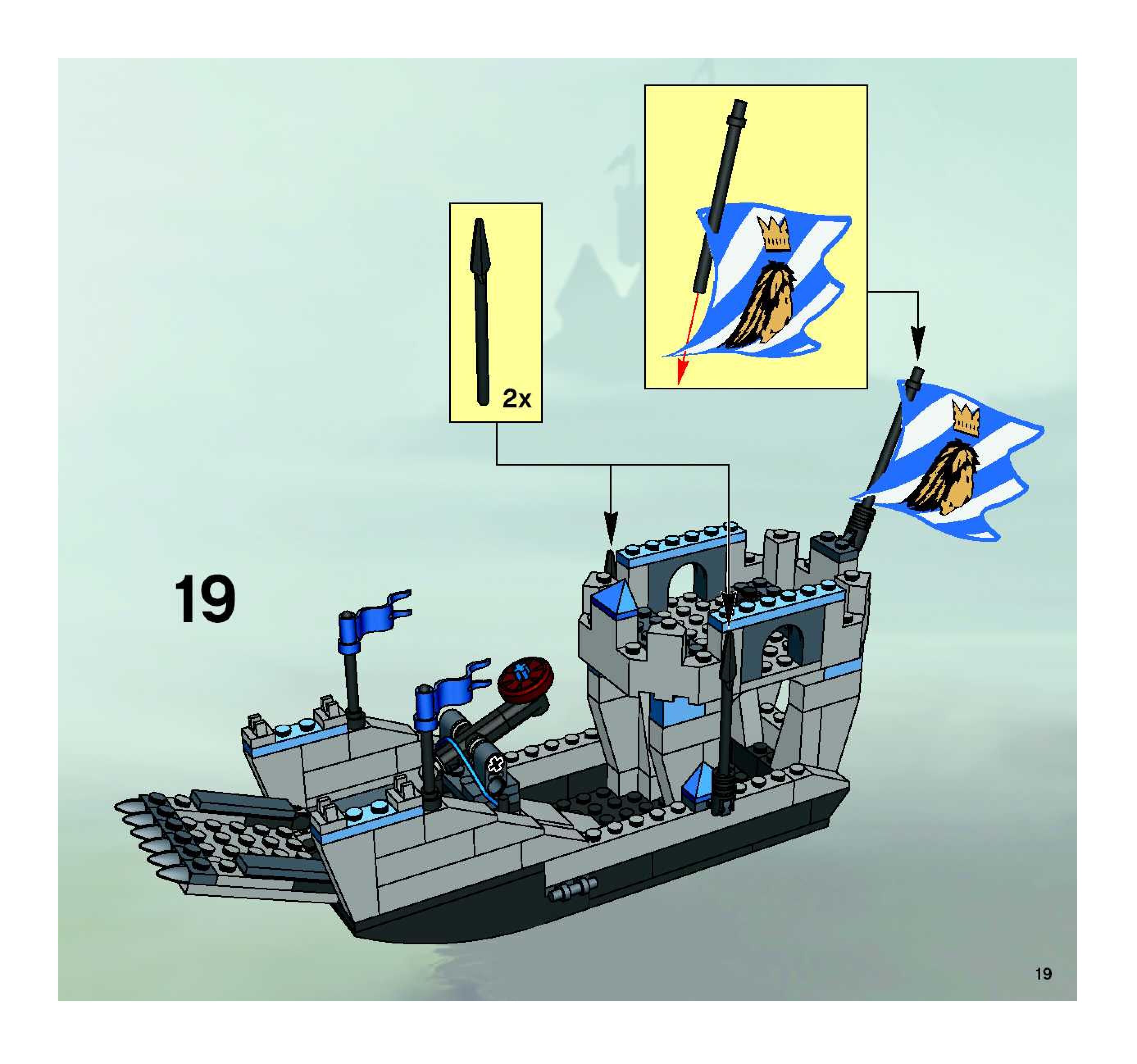 On this page you can find the original construction manual for the LEGO 8801 set. With the assembly manual you can easily learn how to build the 8801 Knights' Attack Barge step by step. The set was released in 2005.