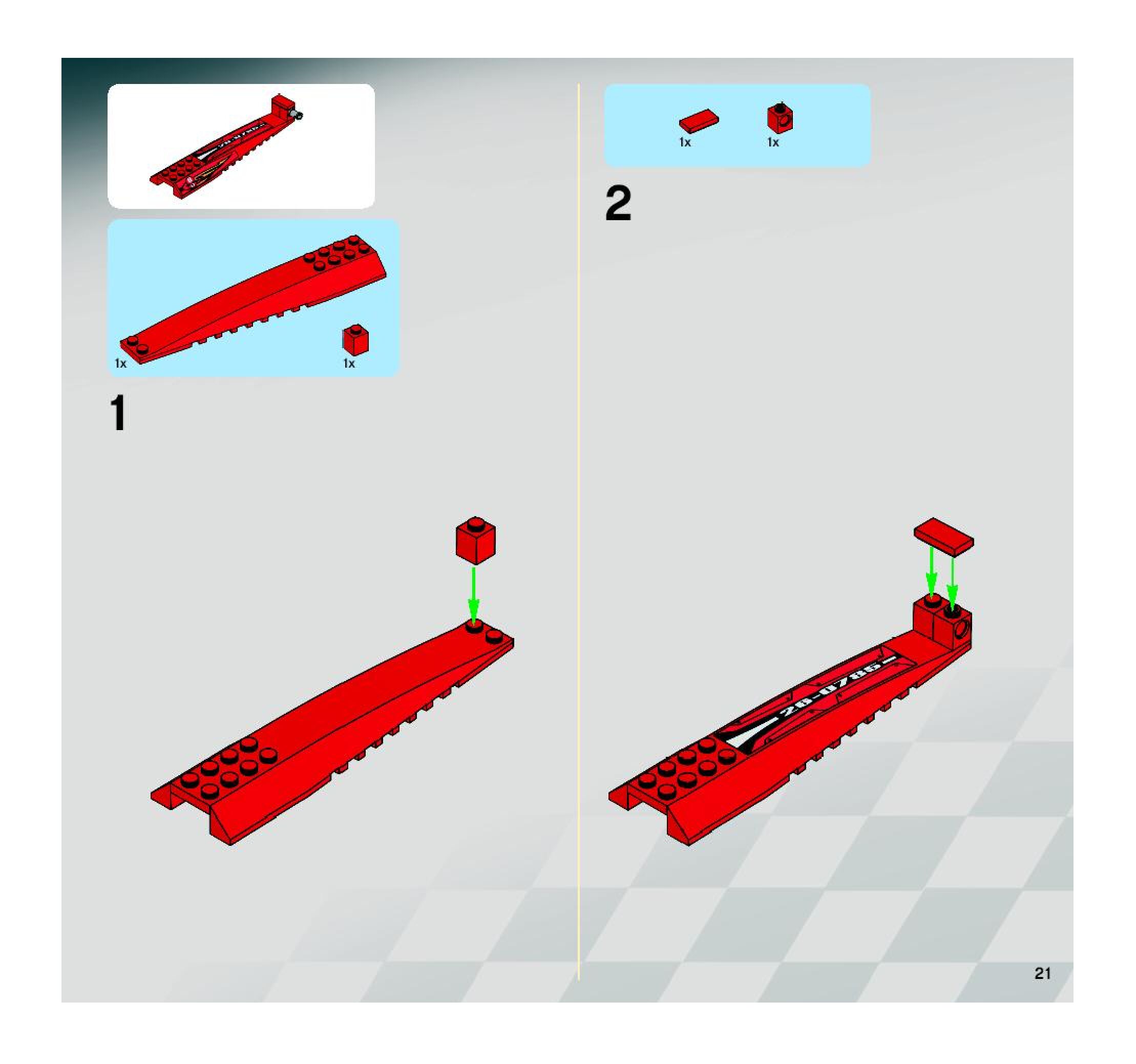 The assembly guide is prepared in a very understandable way for children and adult LEGO enthusiasts. A total of 116 picture galleries are shown, explaining the step-by-step construction stages for 2 different structures.