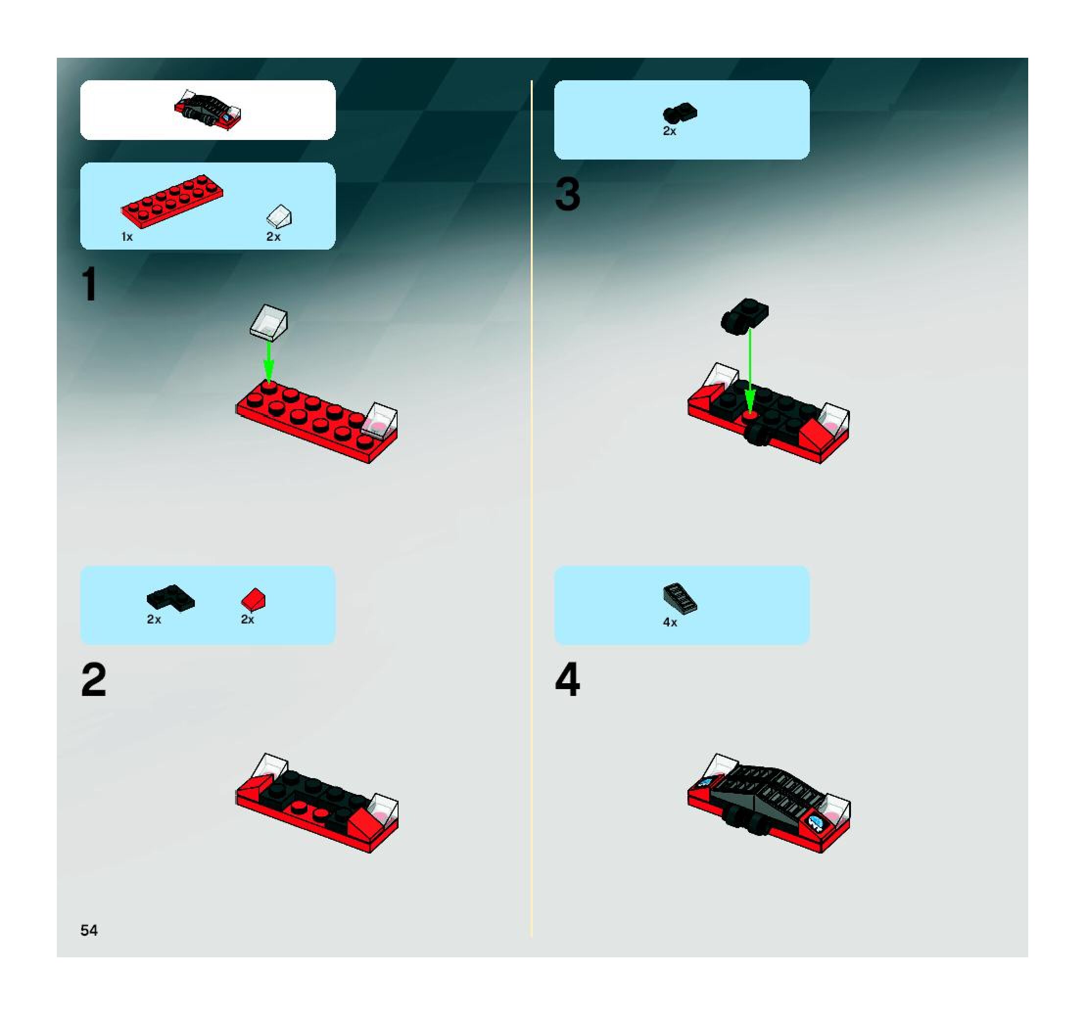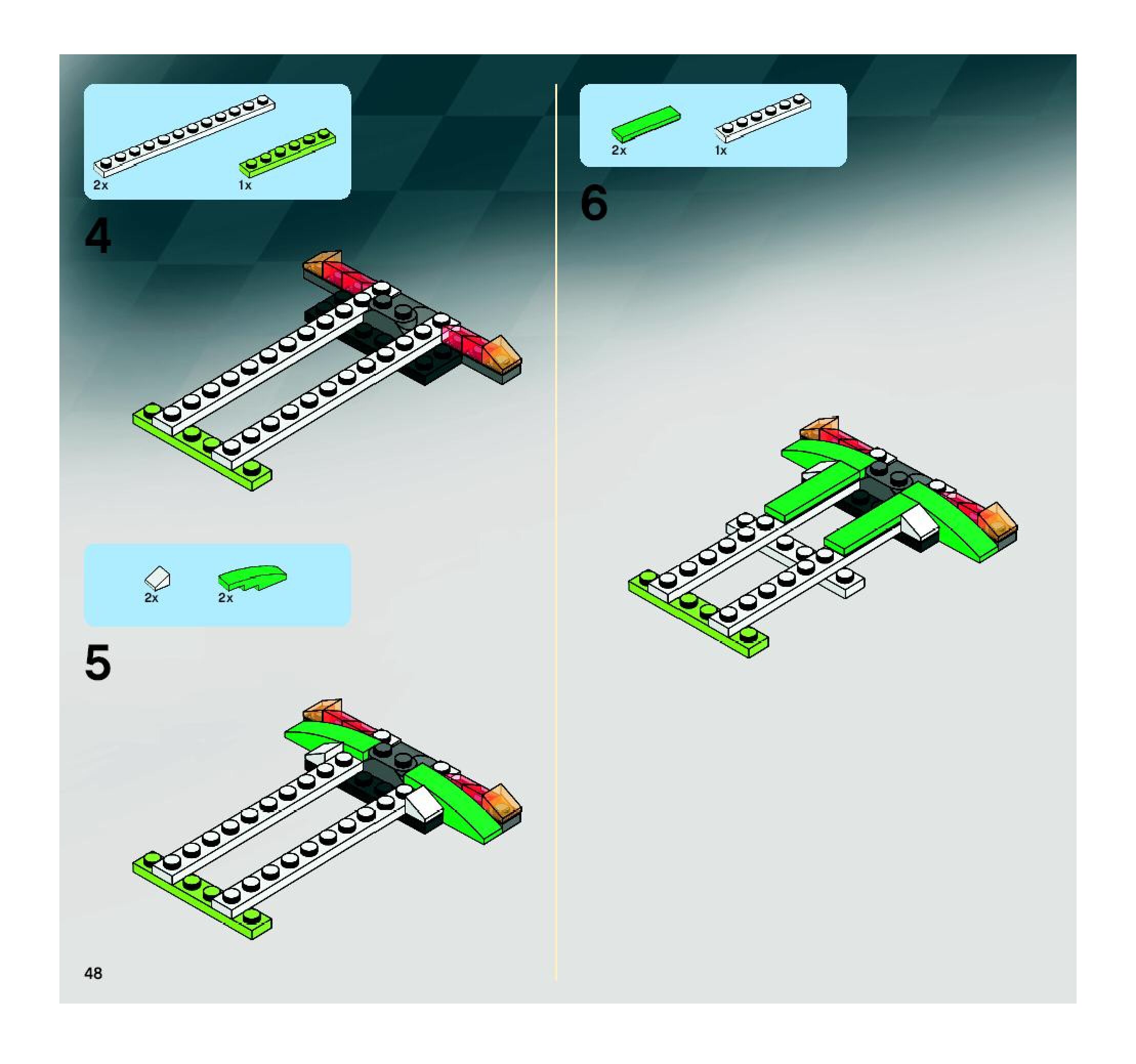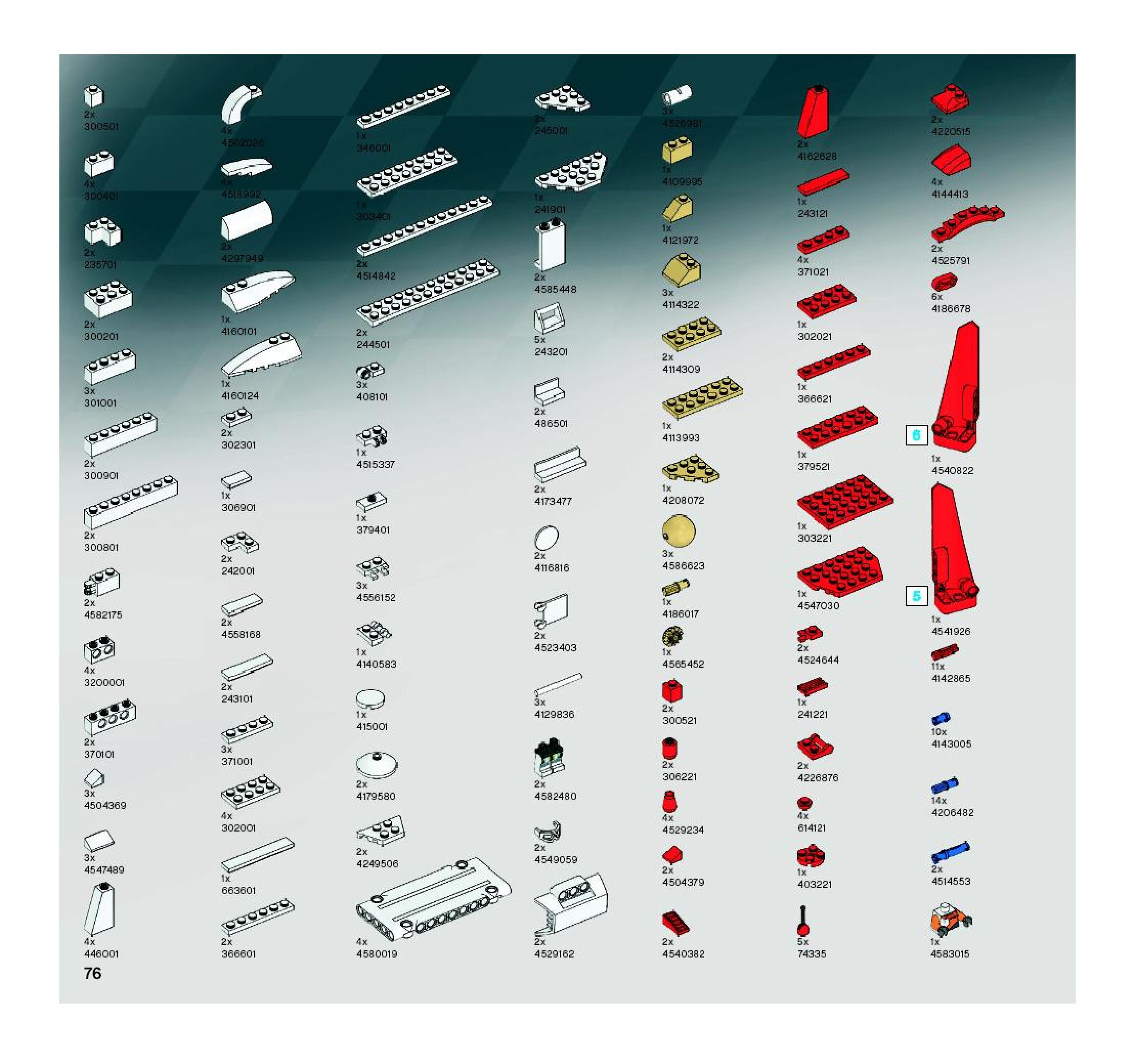 The assembly guide is prepared in a very understandable way for children and adult LEGO enthusiasts. A total of 1080 picture galleries are shown, explaining the step-by-step construction stages for 3 different structures.