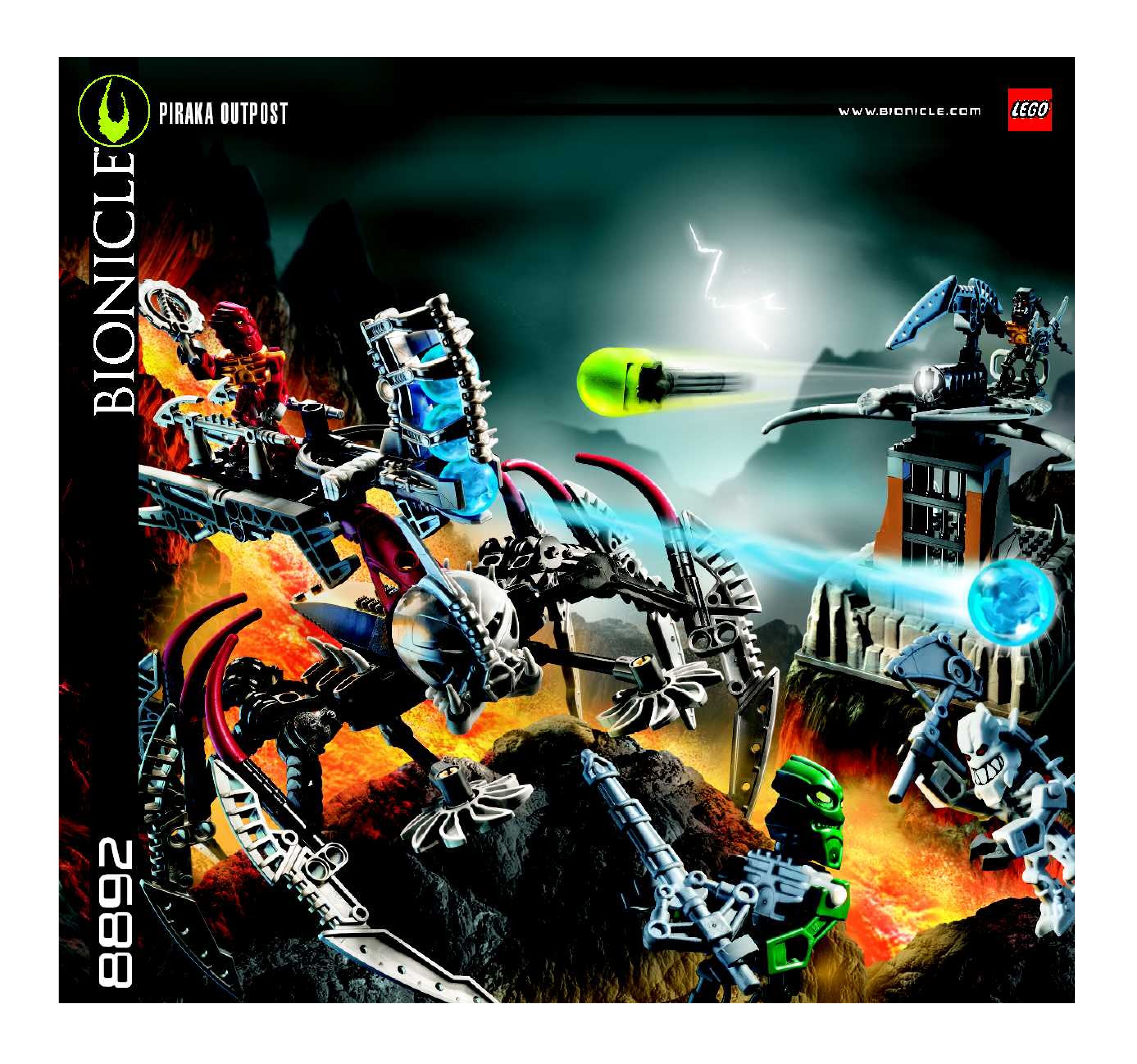This page shares information about LEGO 8892 Piraka Outpost manual, LEGO 8892 PDF instructions, LEGO 8892 Piraka Outpost building guide online, How to build 8892 Piraka Outpost LEGO.
