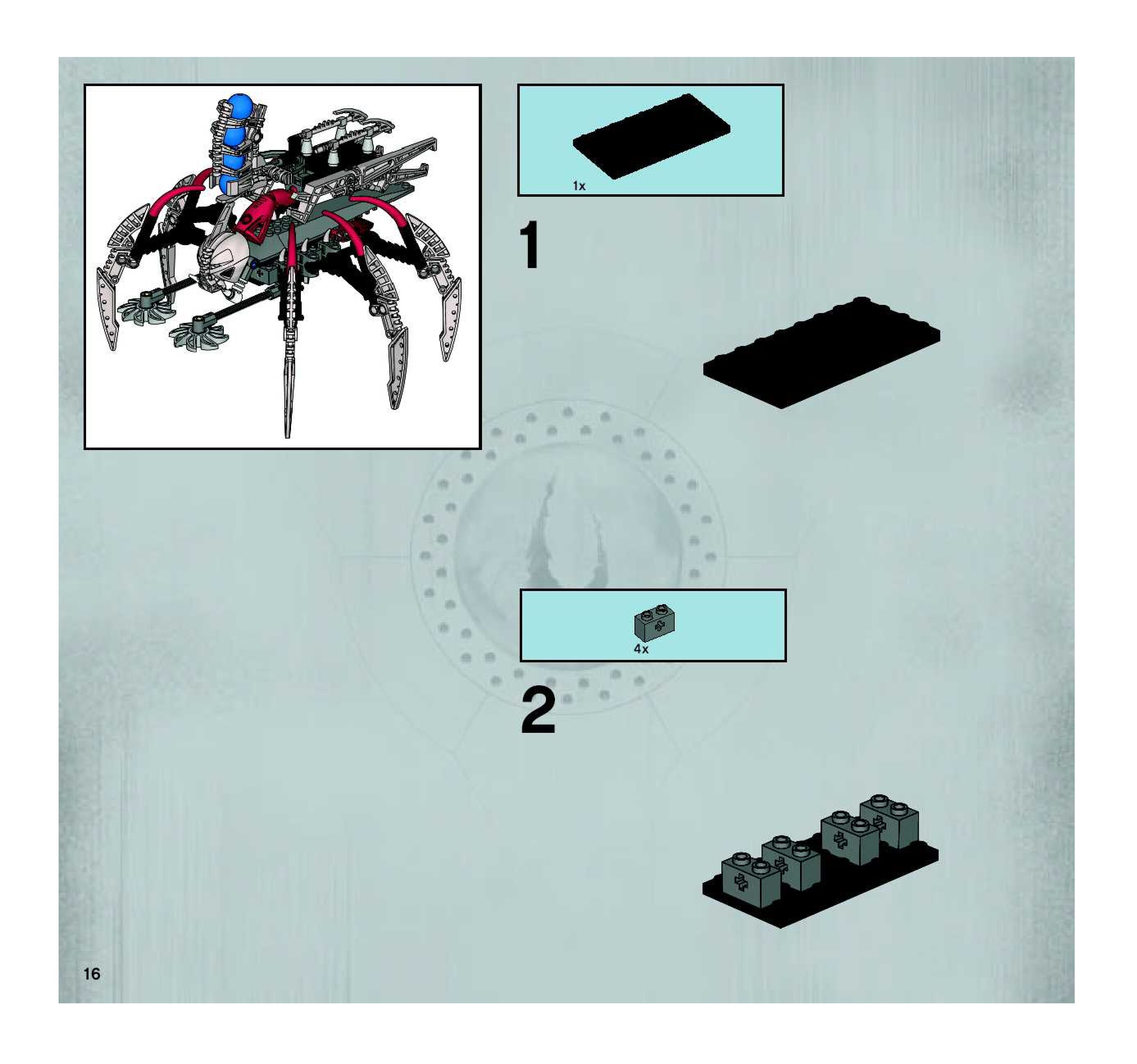 On this page you can find the original construction manual for the LEGO 8892 set. With the assembly manual you can easily learn how to build the 8892 Piraka Outpost step by step. The set was released in 2006.