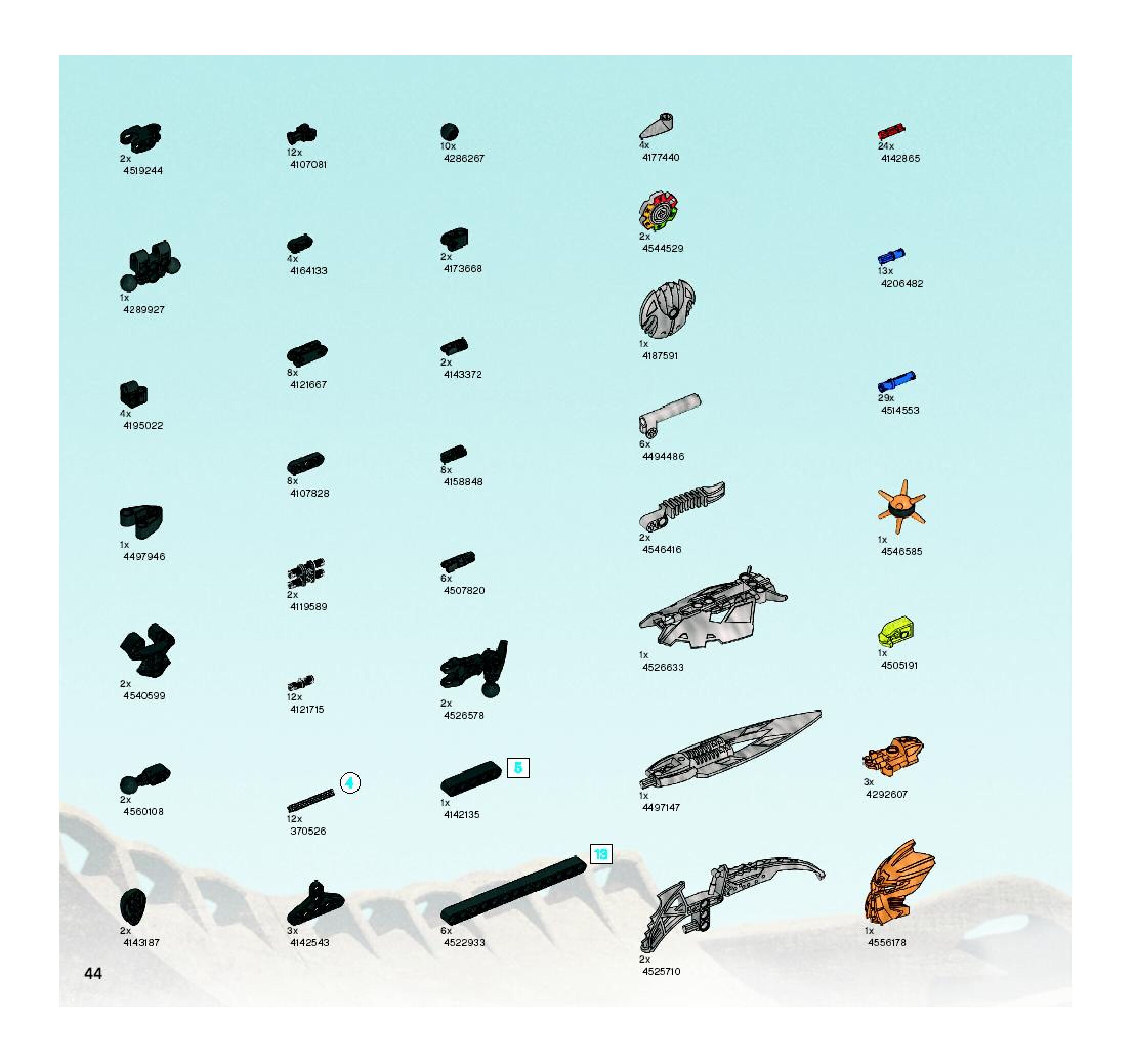 On this page you can find the original construction manual for the LEGO 8998 set. With the assembly manual you can easily learn how to build the 8998 Toa Mata Nui step by step. The set was released in 2009.