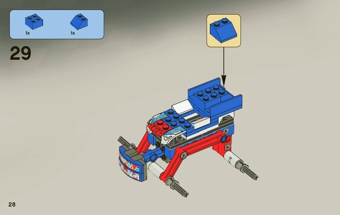 The assembly guide is prepared in a very understandable way for children and adult LEGO enthusiasts. A total of 36 picture galleries are shown, explaining the step-by-step construction stages for 1 different structures.