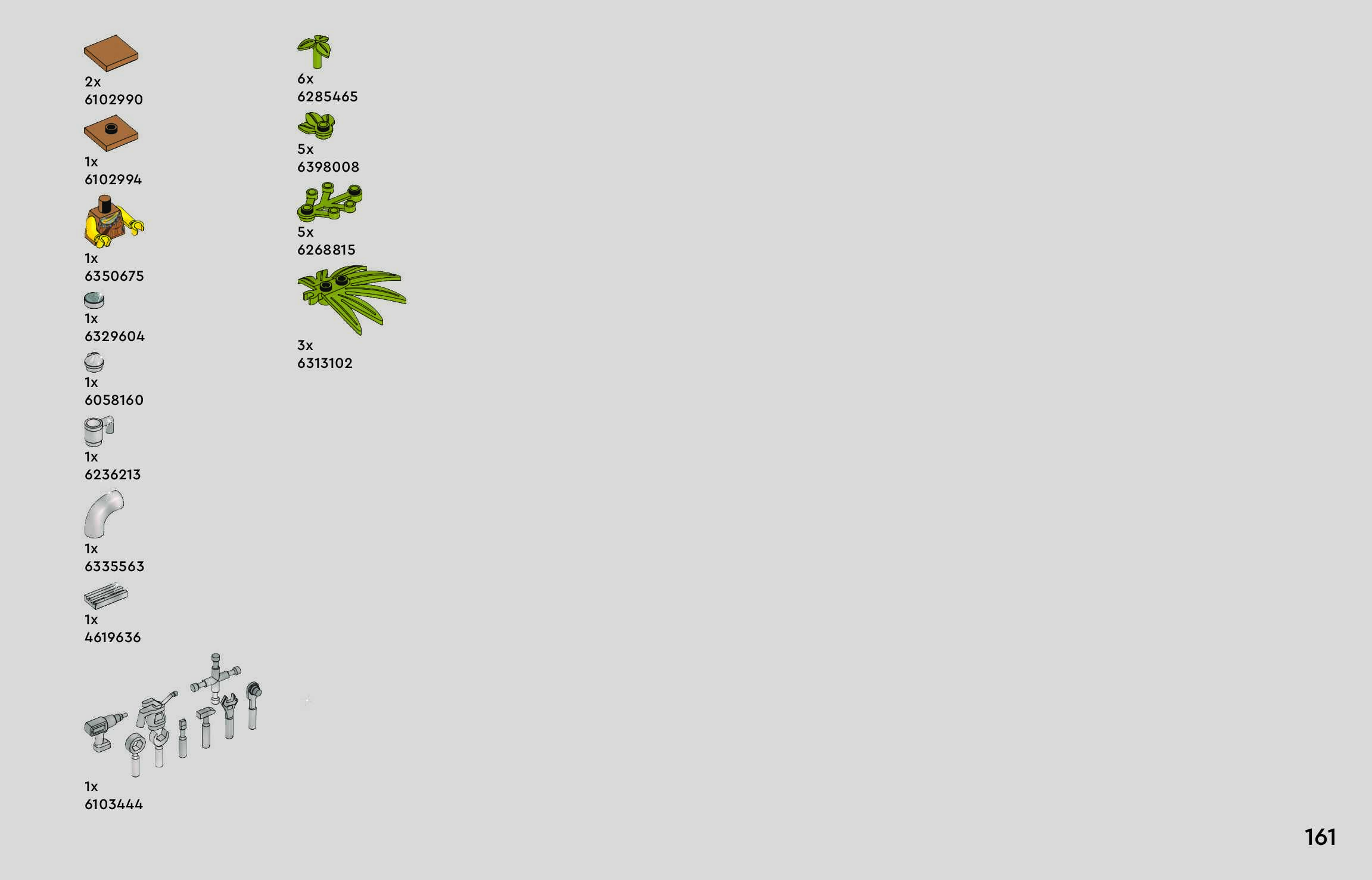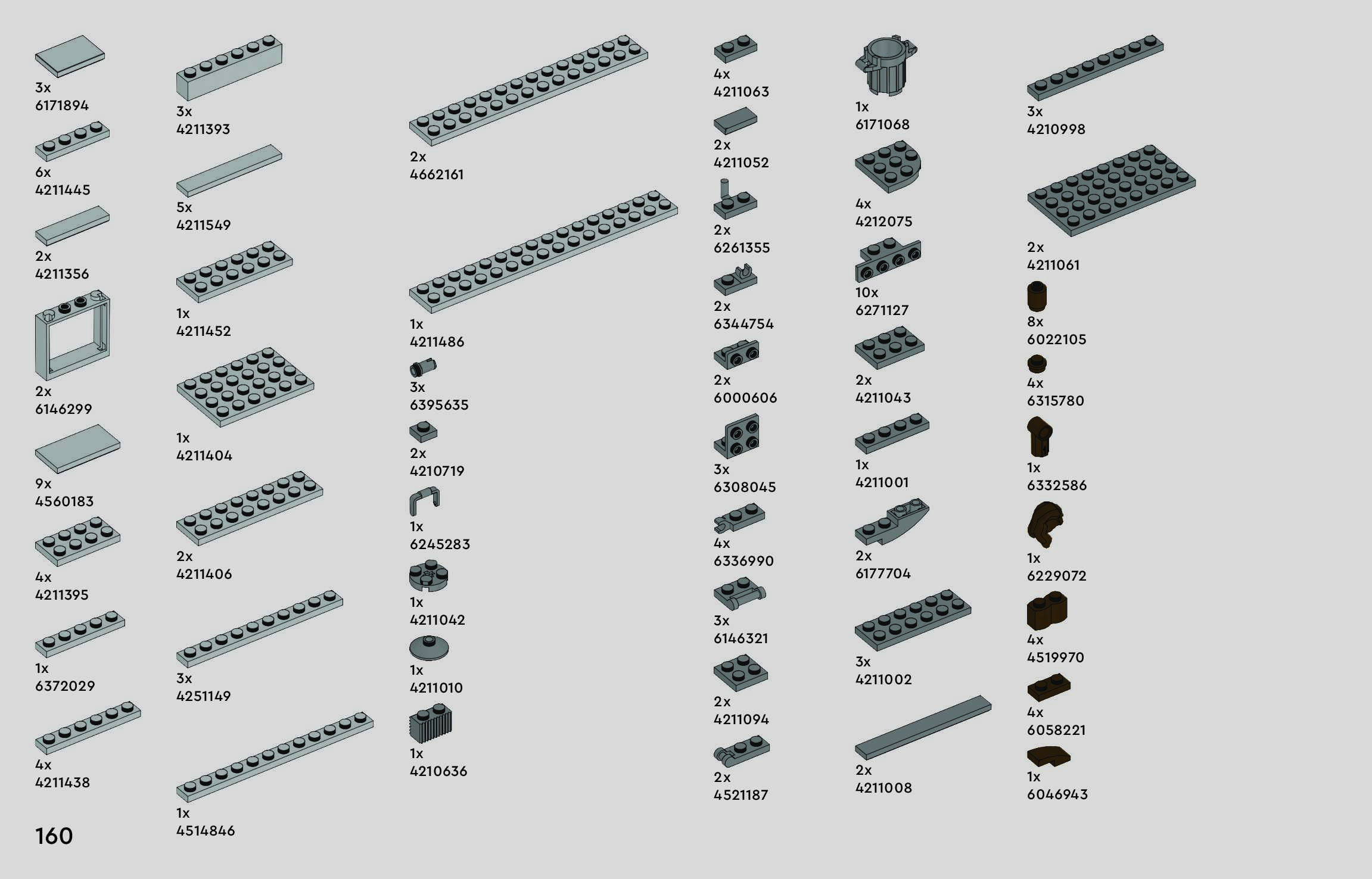 The assembly guide is prepared in a very understandable way for children and adult LEGO enthusiasts. A total of 160 picture galleries are shown, explaining the step-by-step construction stages for 1 different structures.