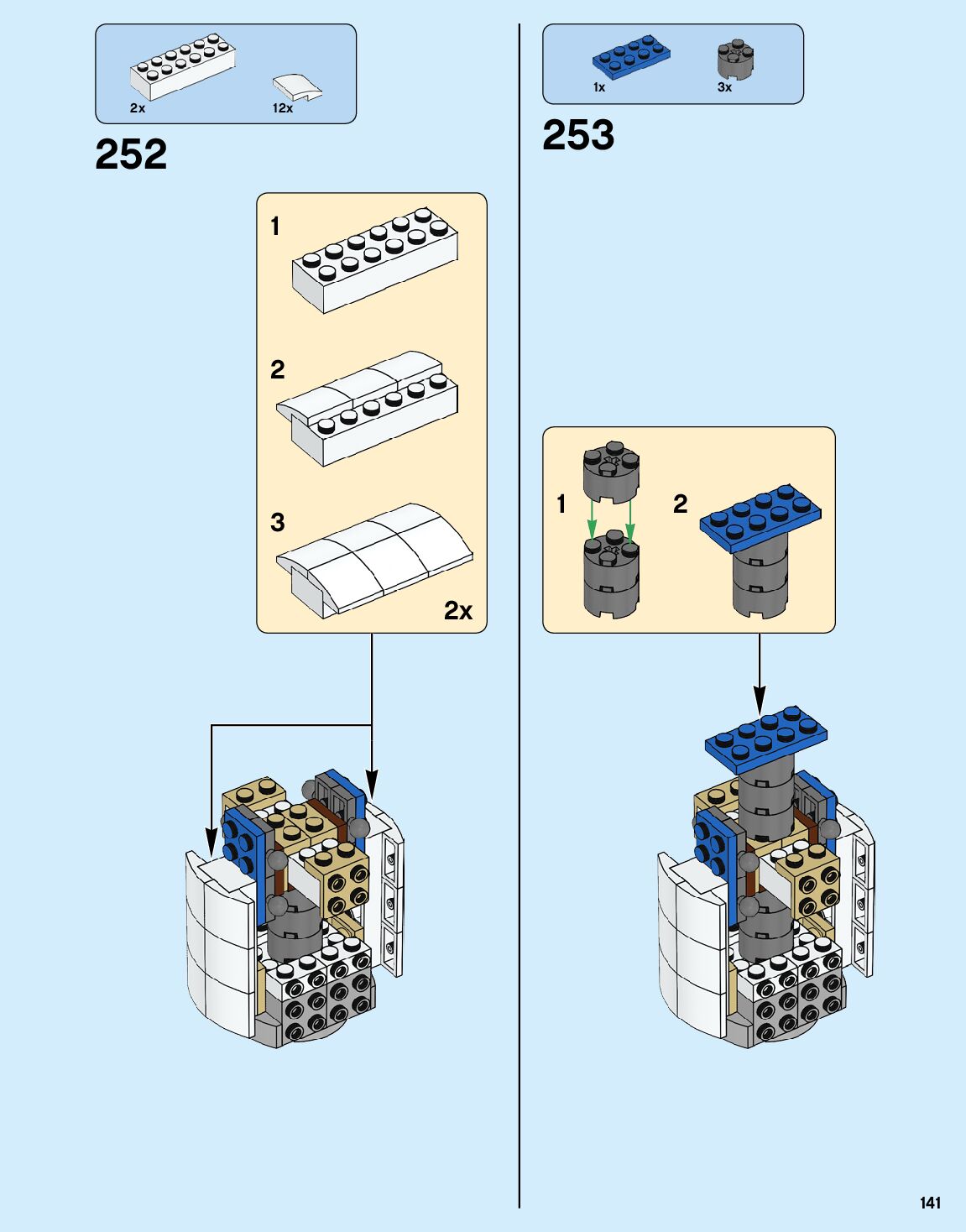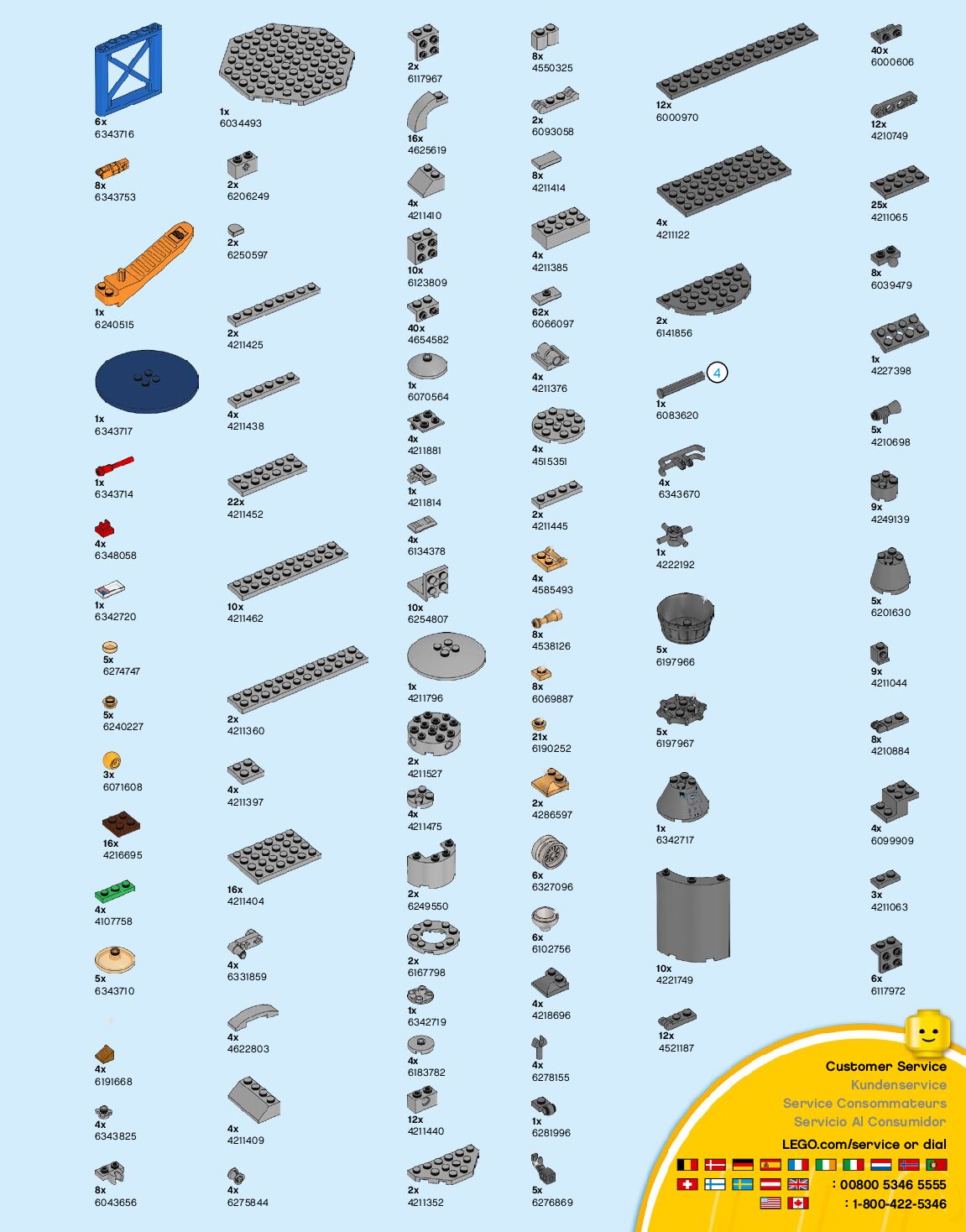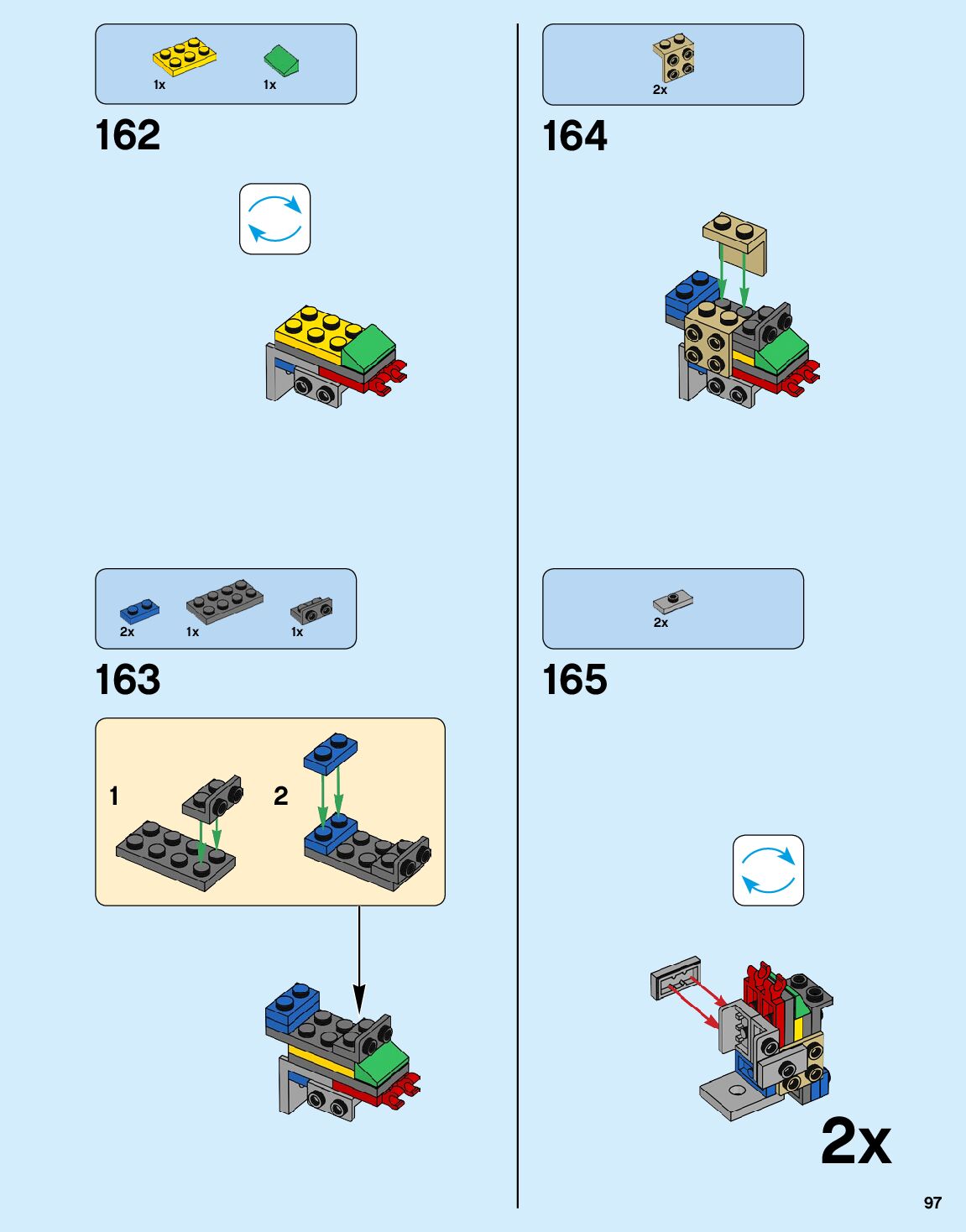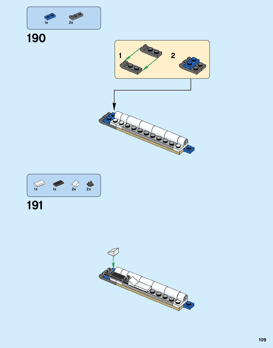 The assembly guide is prepared in a very understandable way for children and adult LEGO enthusiasts. A total of 184 picture galleries are shown, explaining the step-by-step construction stages for 1 different structures.