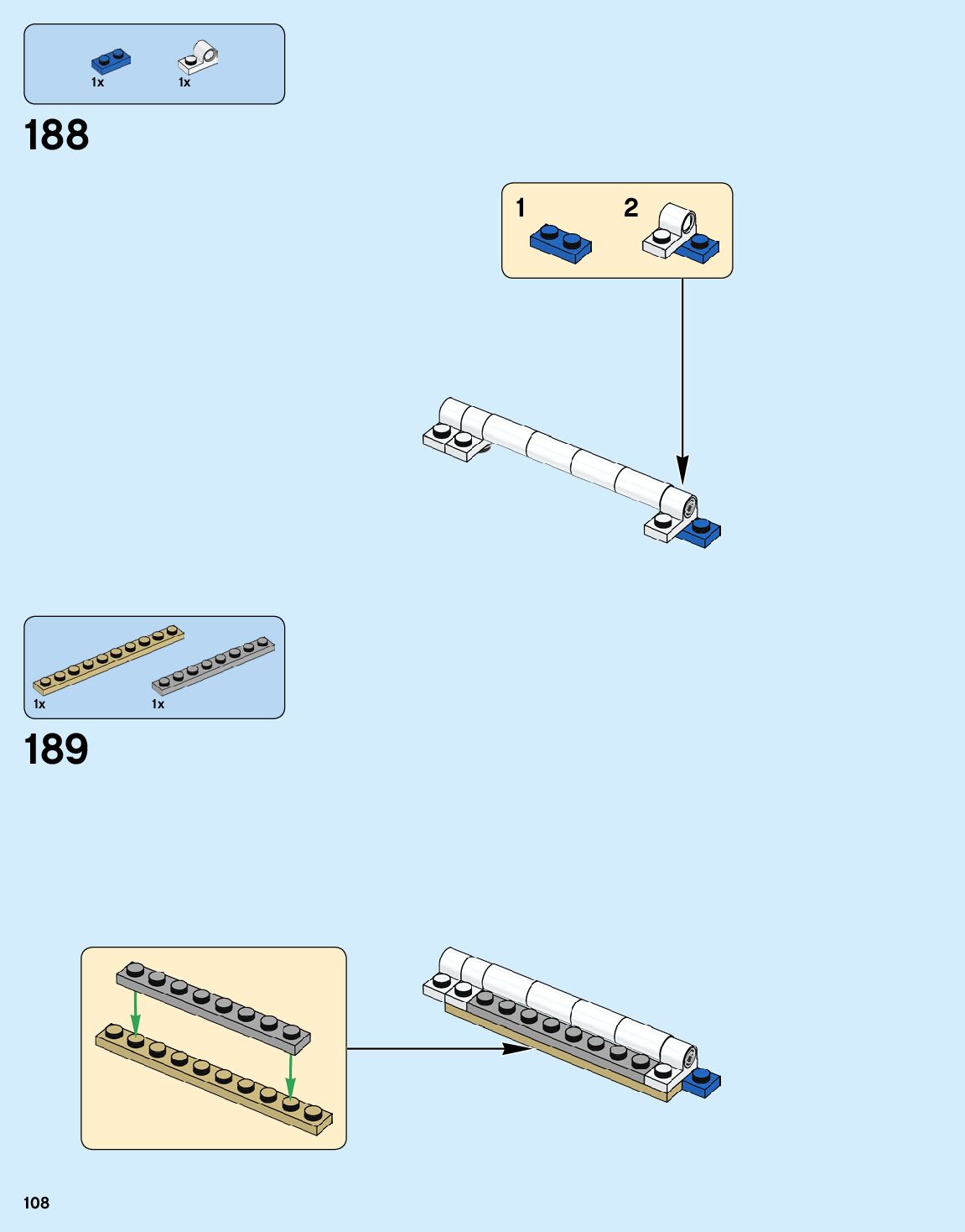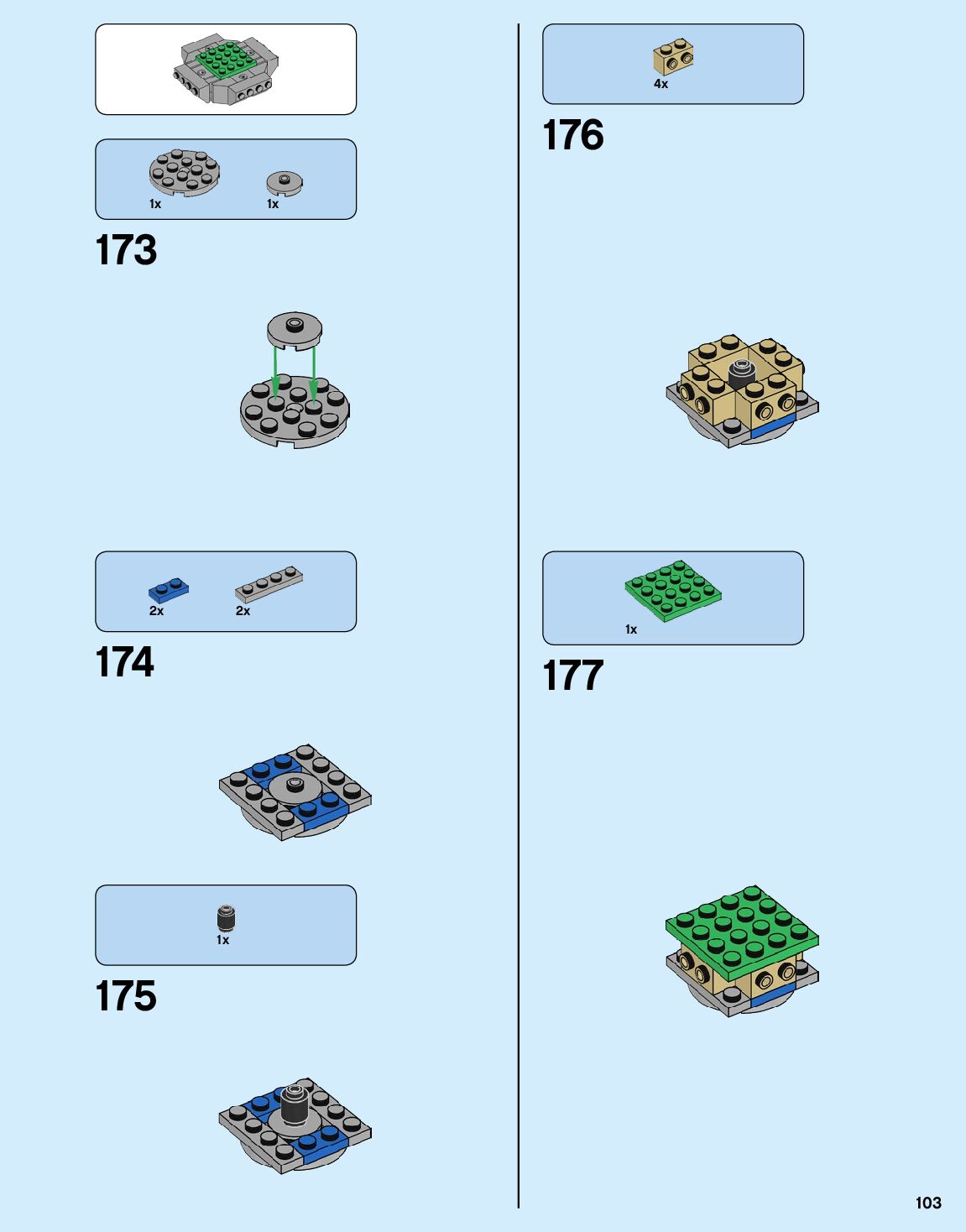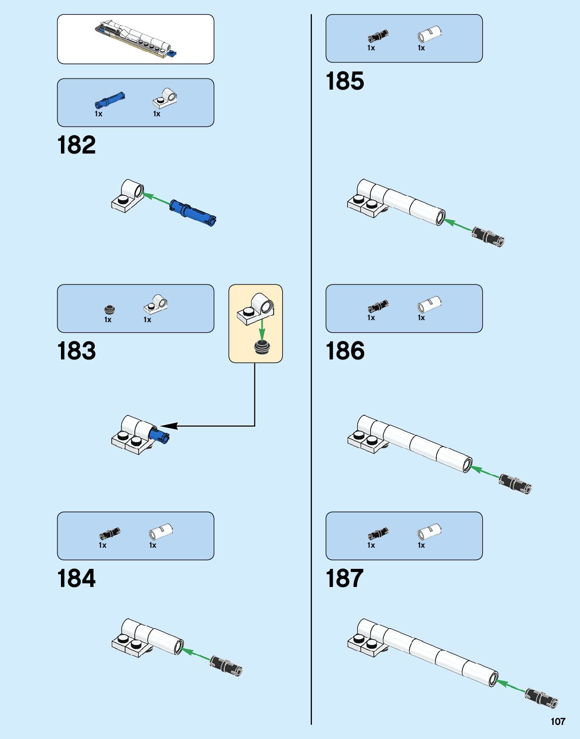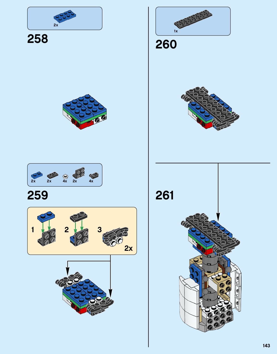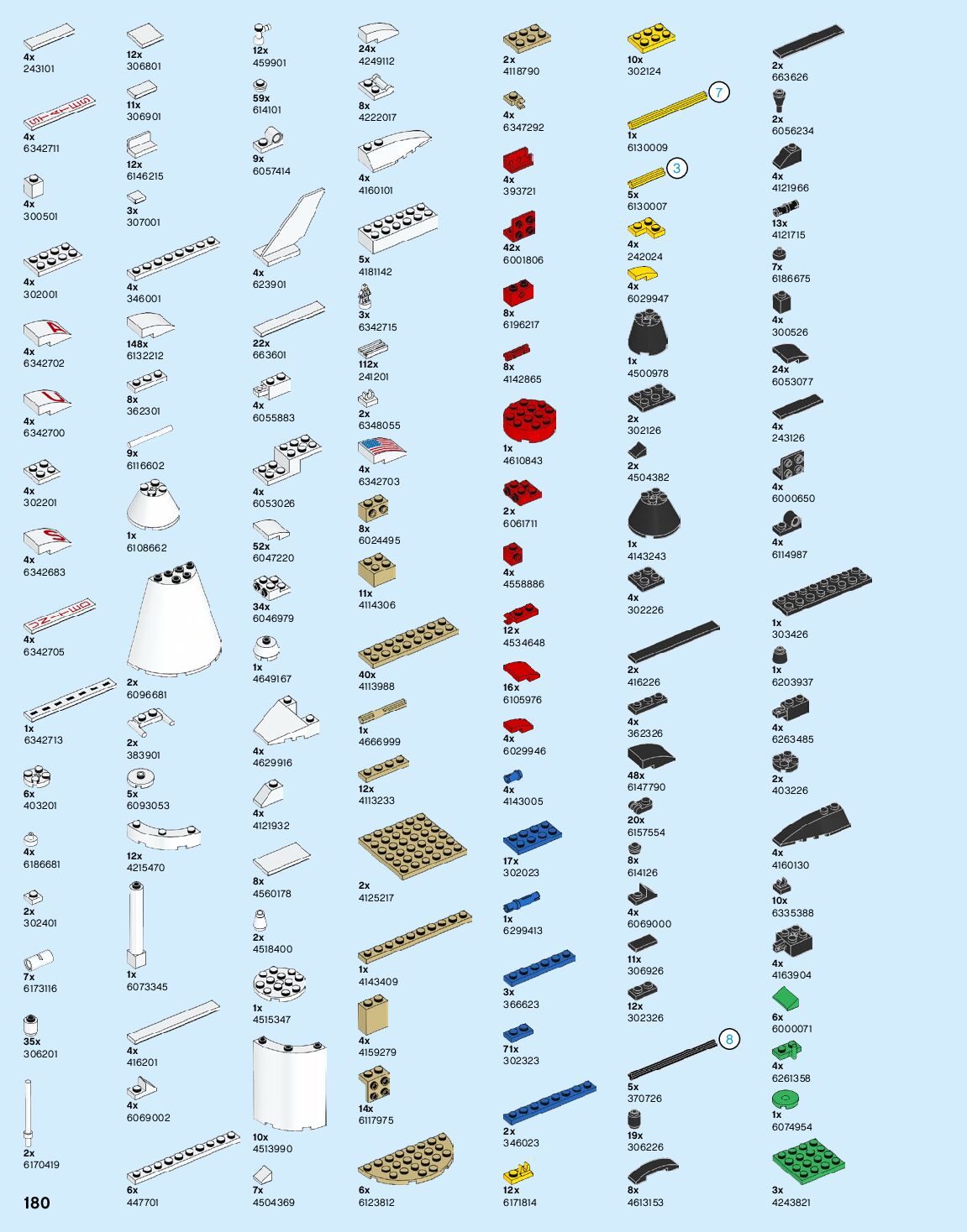 The assembly guide is prepared in a very understandable way for children and adult LEGO enthusiasts. A total of 184 picture galleries are shown, explaining the step-by-step construction stages for 1 different structures.