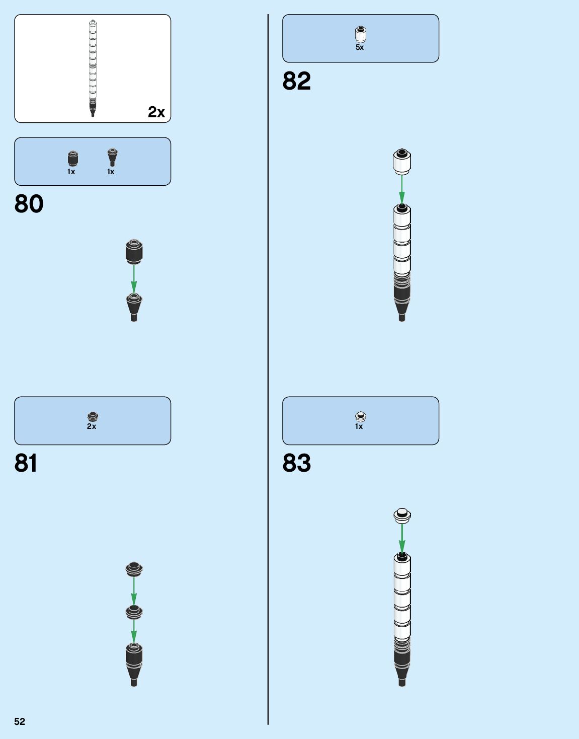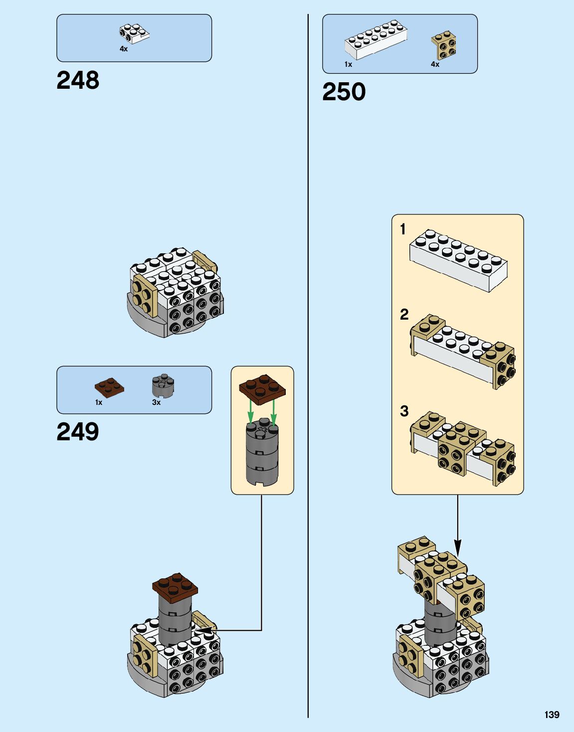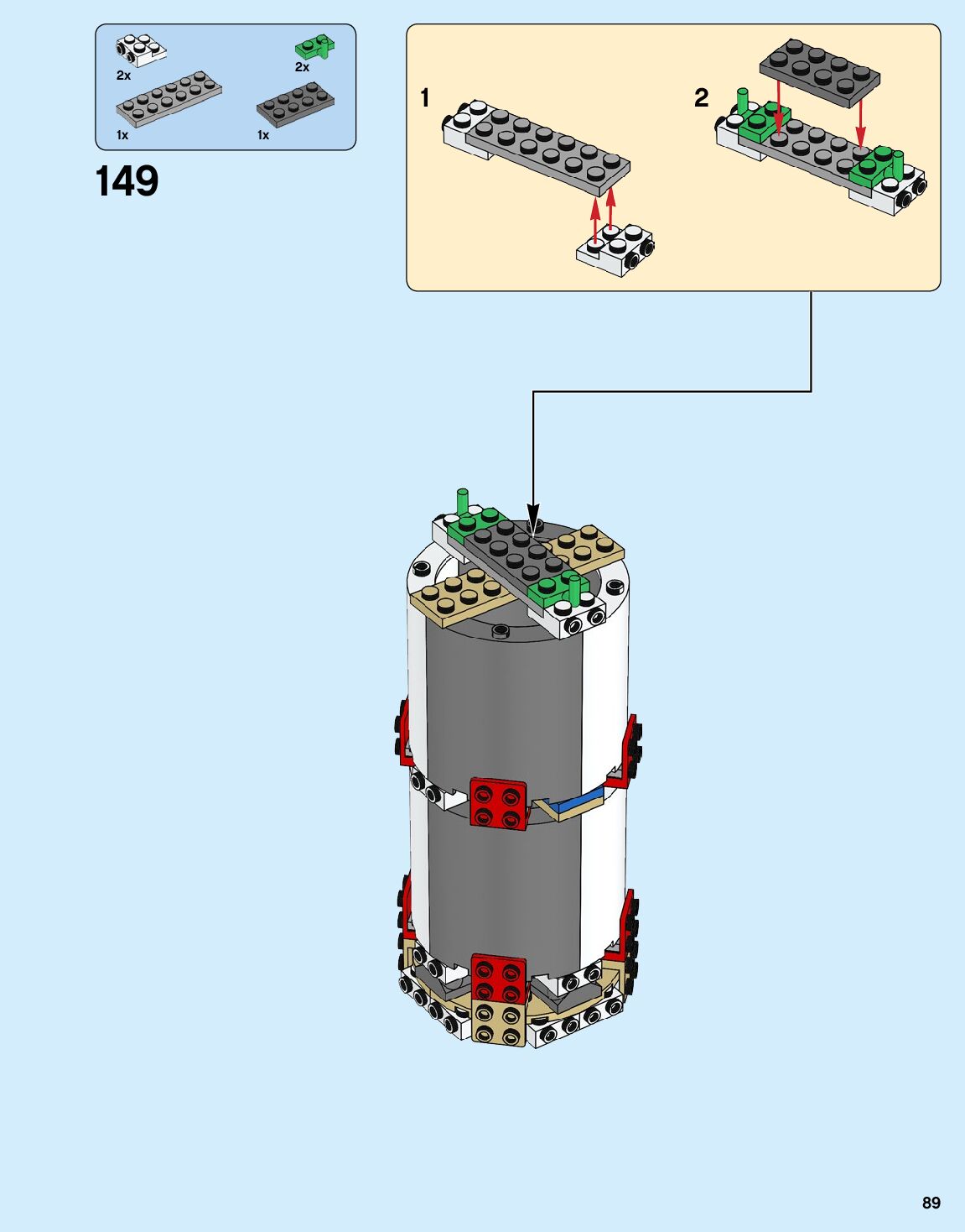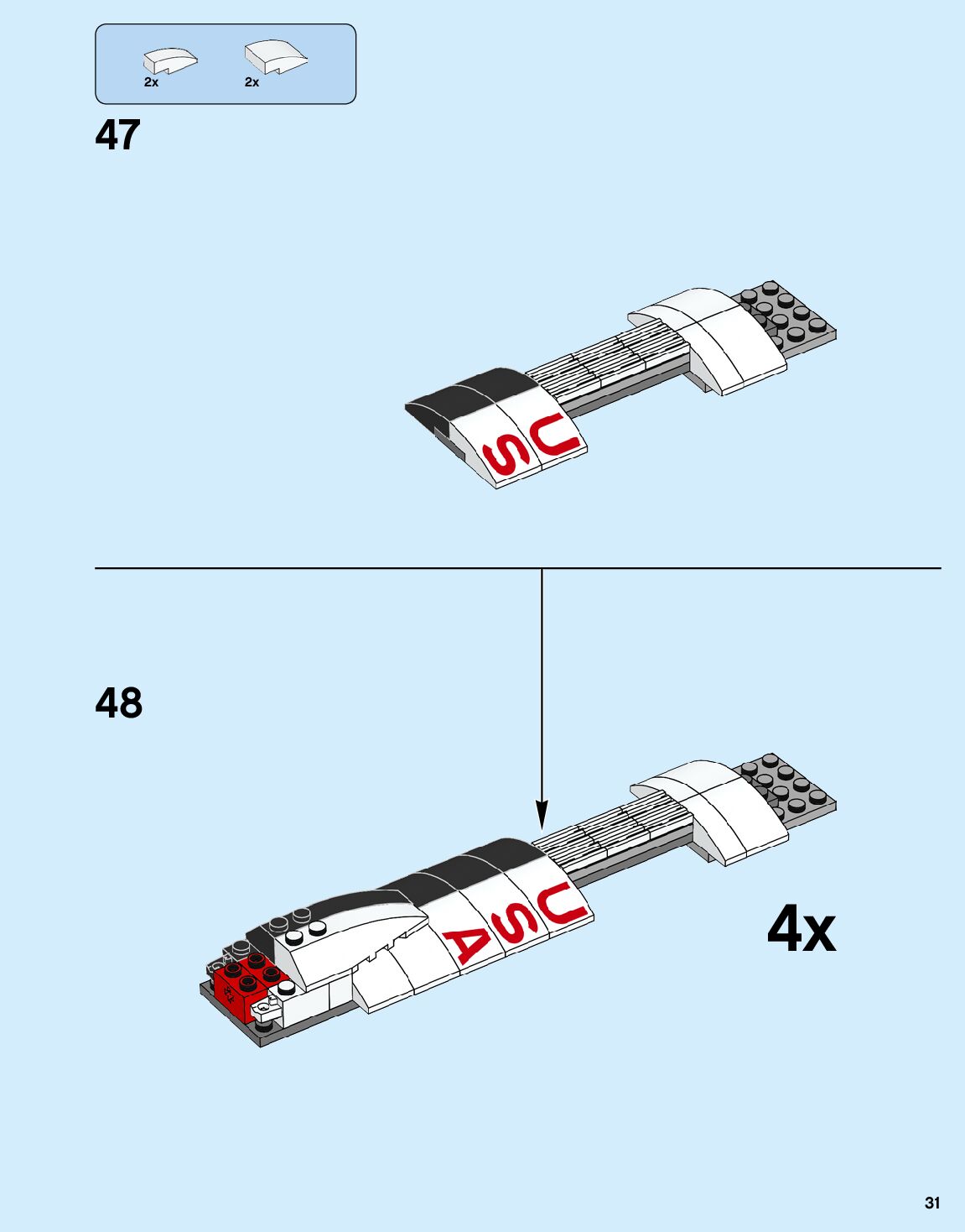 The assembly guide is prepared in a very understandable way for children and adult LEGO enthusiasts. A total of 184 picture galleries are shown, explaining the step-by-step construction stages for 1 different structures.