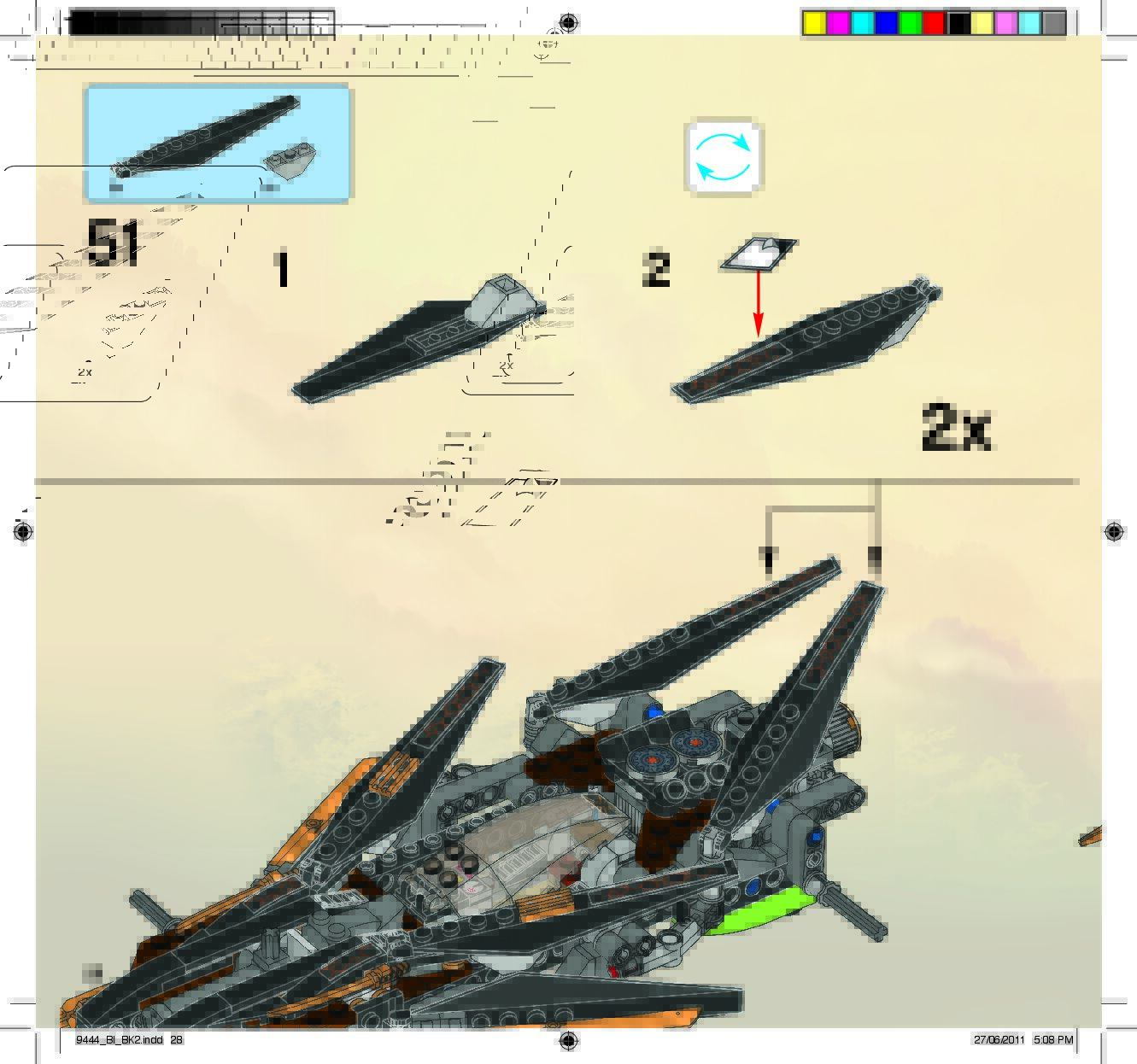 On this page you can find the original construction manual for the LEGO 9444 set. With the assembly manual you can easily learn how to build the 9444 Cole's Tread Assault step by step. The set was released in 2011.