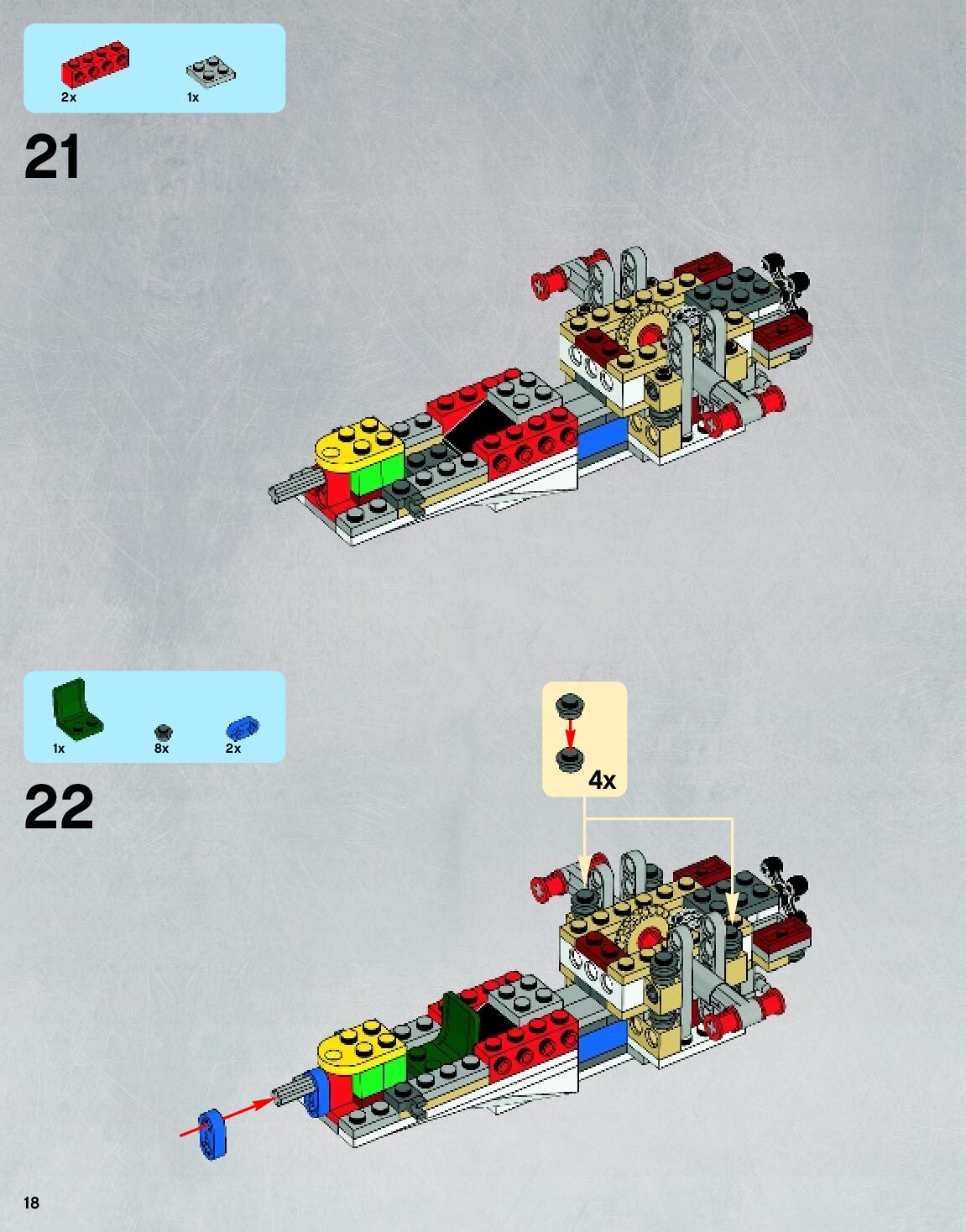 The assembly guide is prepared in a very understandable way for children and adult LEGO enthusiasts. A total of 72 picture galleries are shown, explaining the step-by-step construction stages for 1 different structures.