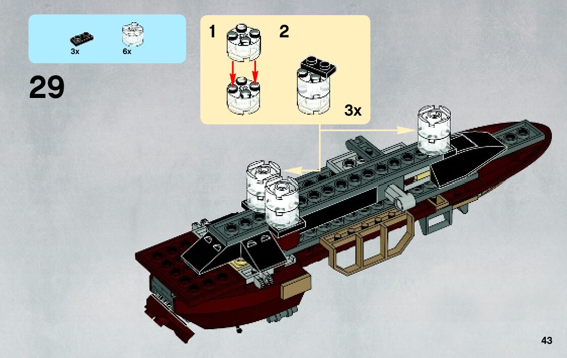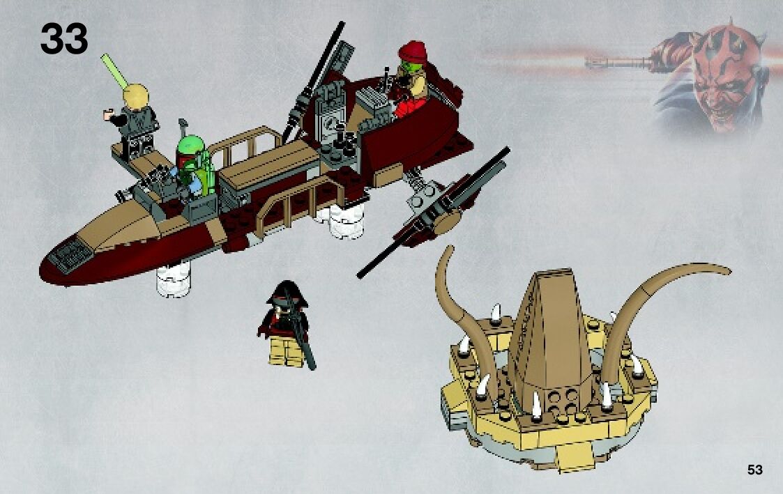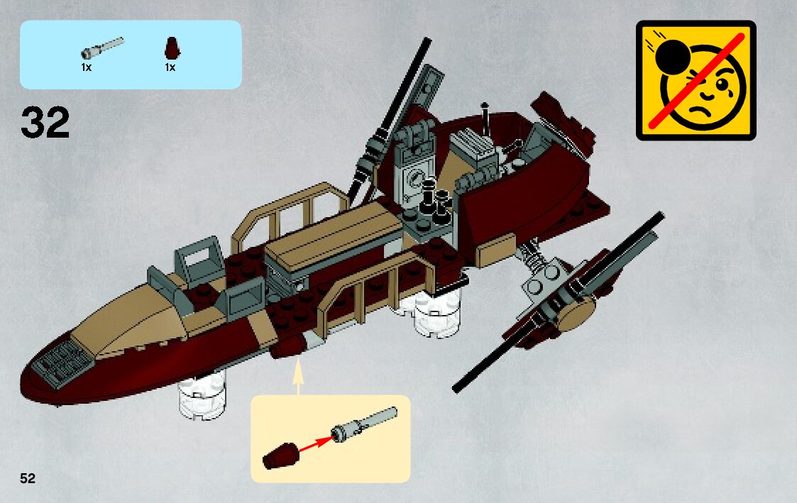 This page shares information about LEGO 9496 Desert Skiff manual, LEGO 9496 PDF instructions, LEGO 9496 Desert Skiff building guide online, How to build 9496 Desert Skiff LEGO.