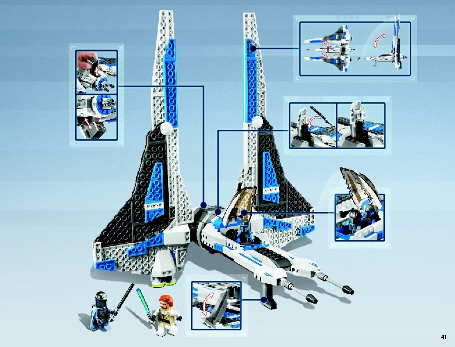 This page shares information about LEGO 9525 Pre Vizsla's Mandalorian Fighter manual, LEGO 9525 PDF instructions, LEGO 9525 Pre Vizsla's Mandalorian Fighter building guide online, How to build 9525 Pre Vizsla's Mandalorian Fighter LEGO.