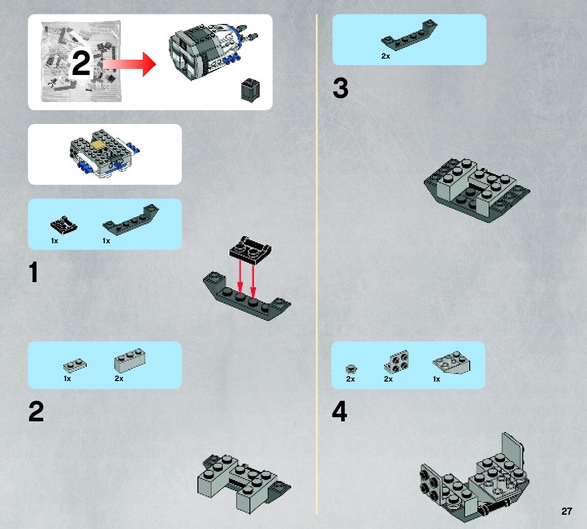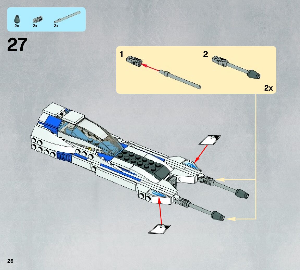 On this page you can find the original construction manual for the LEGO 9525 set. With the assembly manual you can easily learn how to build the 9525 Pre Vizsla's Mandalorian Fighter step by step. The set was released in 2012.