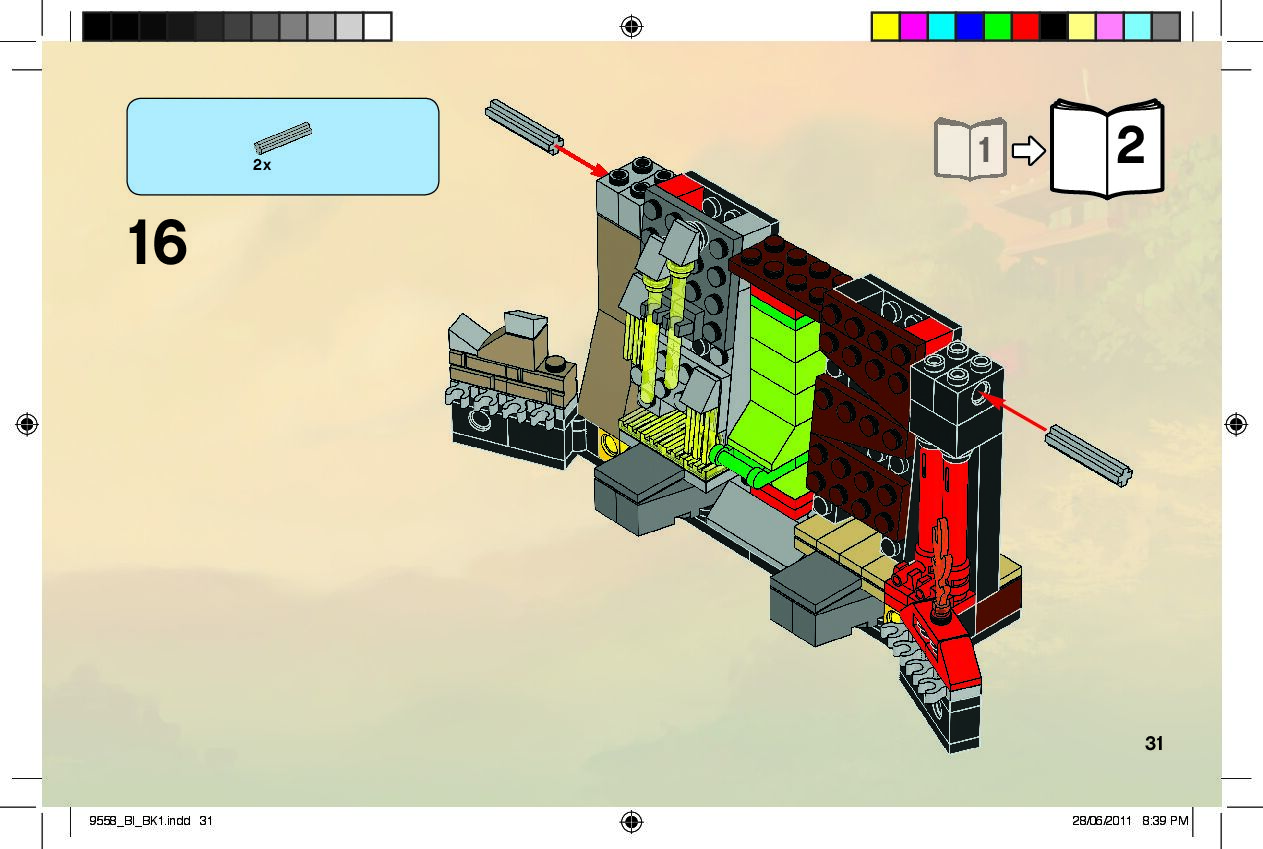 The assembly guide is prepared in a very understandable way for children and adult LEGO enthusiasts. A total of 62 picture galleries are shown, explaining the step-by-step construction stages for 3 different structures.